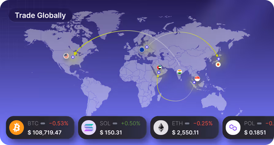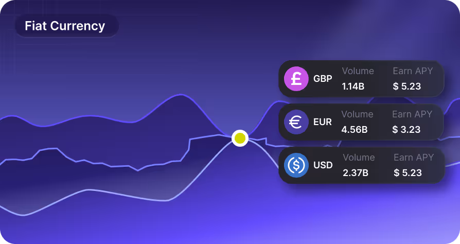 Buy and trade products using both fiat currencies (like USD, GBP, EUR) and blockchain-native stable coins such as USDC or USDT.